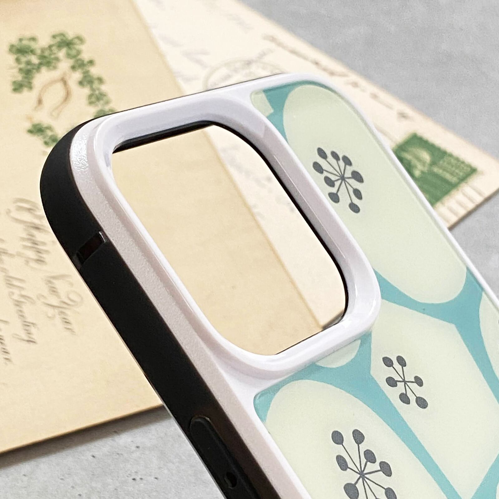 優しい色とデザインで、ホッと一息つけるそんなスマホケースです。